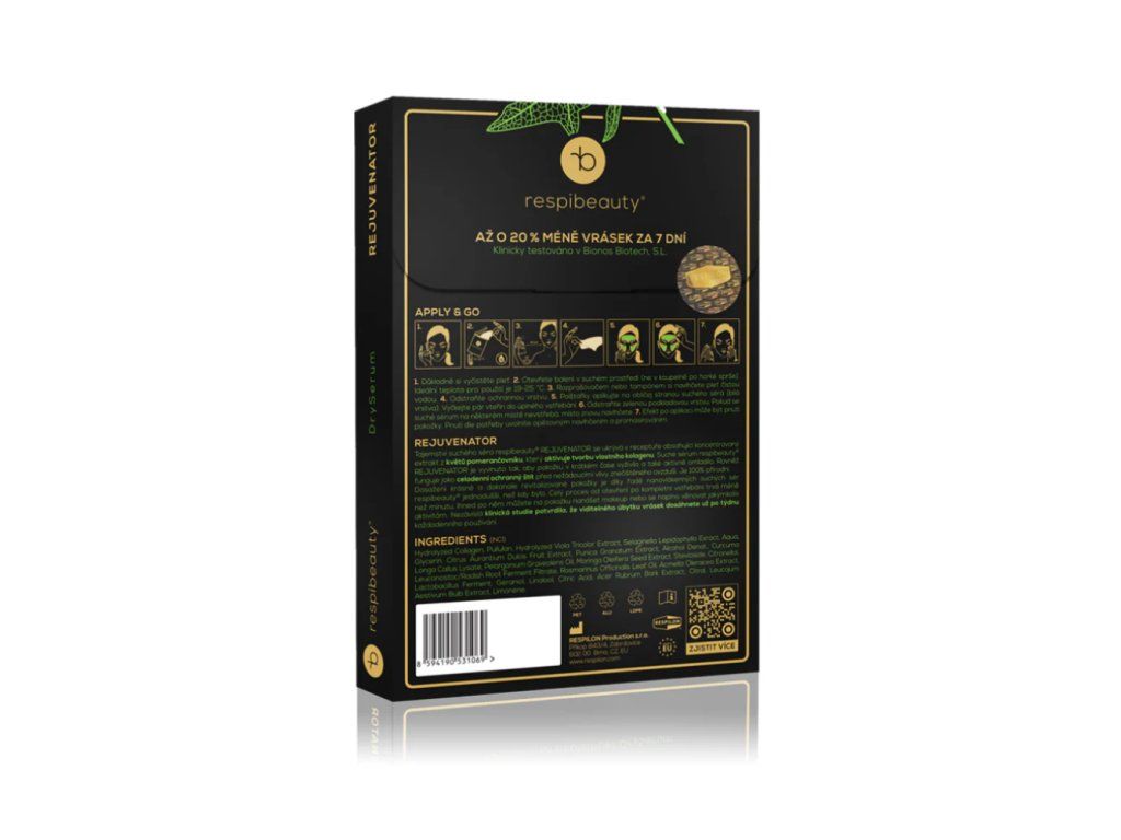 Respibeauty REJUVENATOR bol vyvinutý tak, aby rýchlo poskytol pokožke výživu – aktívne omladzuje. Navyše funguje celý deň ako štít, ktorý vás chráni pred nežiaducim vplyvom znečisťujúcich látok zo ovzdušia. A je 100 % prírodný. Mať krásnu a dokonale revitalizovanú pleť je teraz jednoduchšie ako kedykoľvek predtým vďaka rade suchých sér Respibeauty s nanofiber.